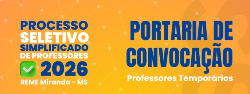 A Secretaria Municipal de Educação de Miranda/MS (SEMED) torna públicos os Editais de Convocação referentes ao Processo Seletivo Simplificado de Professores – Ano Letivo de 2026, destinados ao preenchimento de vagas temporárias e à composição do Cadastro Reserva da rede municipal de ensino. Os editais apresentam a relação dos candidatos convocados, bem como as orientações, prazos e procedimentos necessários para apresentação de documentação e demais etapas obrigatórias para a contratação.